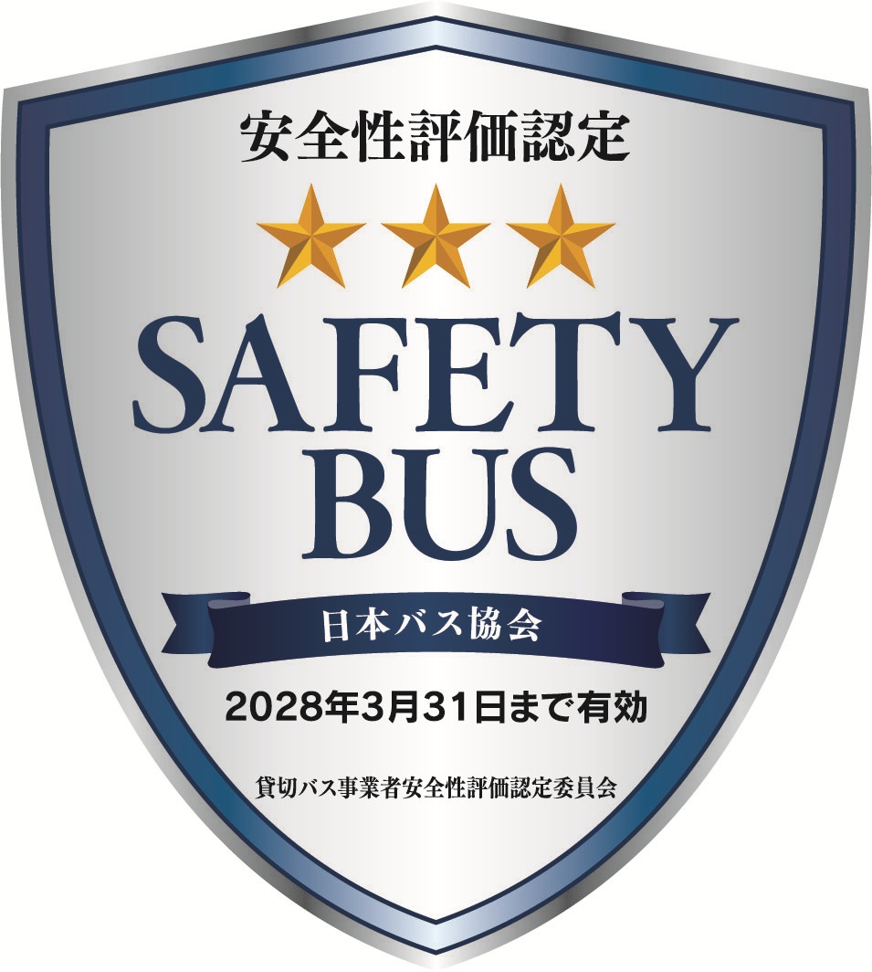 このシンボルマークは、貸切バスを利用されるお客様・旅行会社様が安心してバス会社を選択できるよう、安全に対する取組み状況が優良なバス会社であることを示すものです。 <日本観光は上位ランクの三ツ星(☆☆☆)に認定されています>